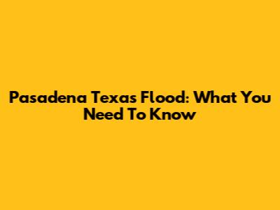 Pasadena Texas Flood: What You Need To Know