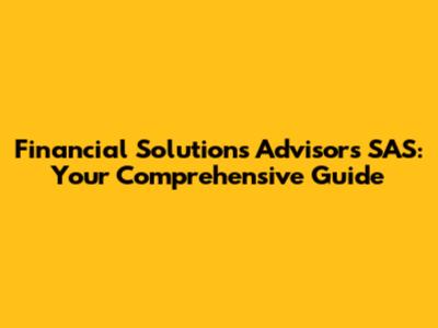 Hey everyone! Today, we're diving deep into Financial Solutions Advisors SAS, a name that might sound a little formal, but trust me, it's all about helping you navigate the sometimes-tricky world of finances. We'll break down what they do, why they're important, and how they can potentially help you achieve your financial goals. So, grab a coffee, sit back, and let's get started!
