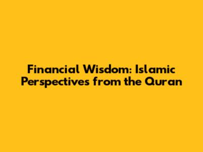 Financial Wisdom: Islamic Perspectives From The Quran