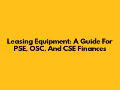 Leasing Equipment: A Guide For PSE, OSC, And CSE Finances