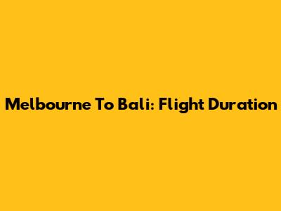 Melbourne To Bali: Flight Duration
