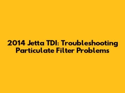 2014 Jetta TDI: Troubleshooting Particulate Filter Problems