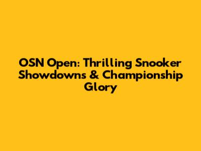OSN Open: Thrilling Snooker Showdowns & Championship Glory