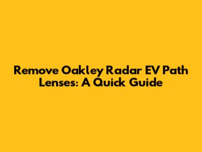 Remove Oakley Radar EV Path Lenses: A Quick Guide
