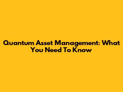 Quantum Asset Management: What You Need To Know