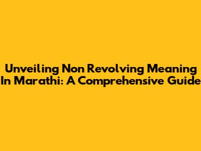 Unveiling 'Non Revolving' Meaning In Marathi: A Comprehensive Guide