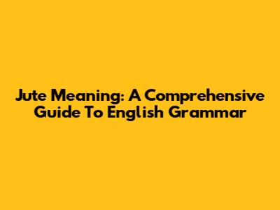 Jute Meaning: A Comprehensive Guide To English Grammar