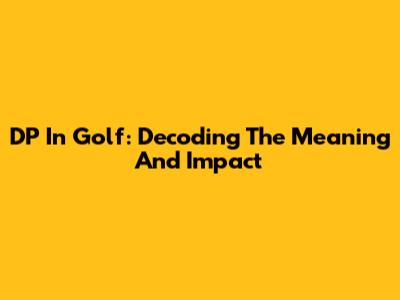 DP In Golf: Decoding The Meaning And Impact