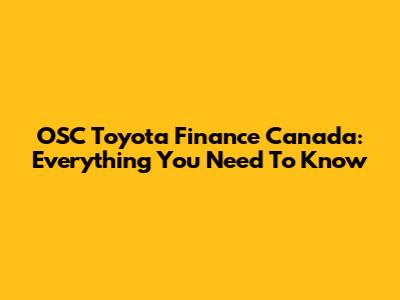 OSC Toyota Finance Canada: Everything You Need To Know