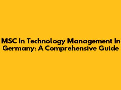 MSC In Technology Management In Germany: A Comprehensive Guide