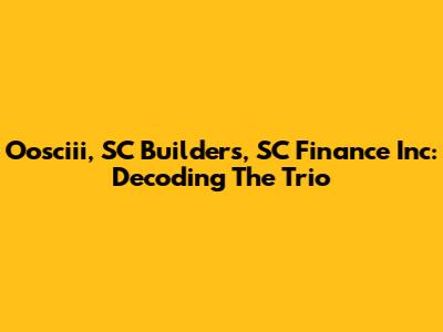 Oosciii, SC Builders, SC Finance Inc: Decoding The Trio