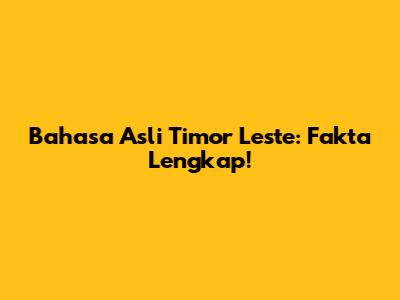 Bahasa Asli Timor Leste: Fakta Lengkap!
