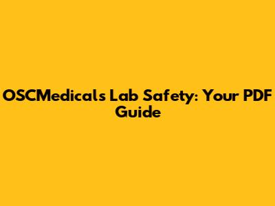 OSCMedicals Lab Safety: Your PDF Guide