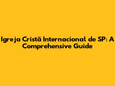 Igreja Cristã Internacional De SP: A Comprehensive Guide