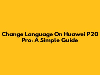 Change Language On Huawei P20 Pro: A Simple Guide