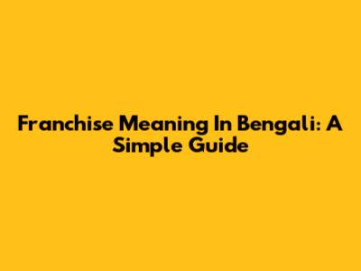 Franchise Meaning In Bengali: A Simple Guide