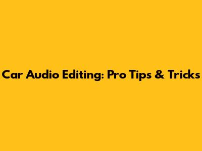 Car Audio Editing: Pro Tips & Tricks