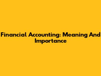 Financial Accounting: Meaning And Importance