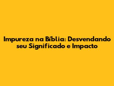 A impureza na Bíblia é um tema complexo, com implicações profundas na vida religiosa e social do povo de Deus. Ao longo deste artigo, exploramos o conceito de impureza, seus diferentes tipos, as leis de purificação e a transformação que ocorreu no Novo Testamento. Vimos como a impureza não era apenas uma questão ritual, mas também uma questão de afastamento da presença de Deus.