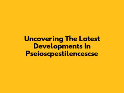 Uncovering The Latest Developments In Pseioscpestilencescse