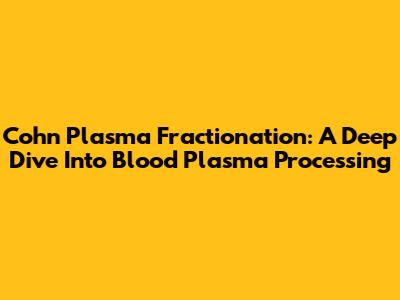 Cohn Plasma Fractionation: A Deep Dive Into Blood Plasma Processing