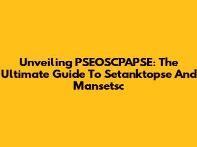 Unveiling PSEOSCPAPSE: The Ultimate Guide To Setanktopse And Mansetsc
