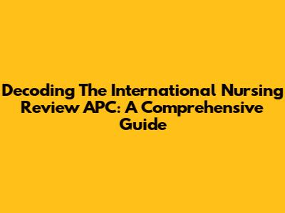 Decoding The International Nursing Review APC: A Comprehensive Guide