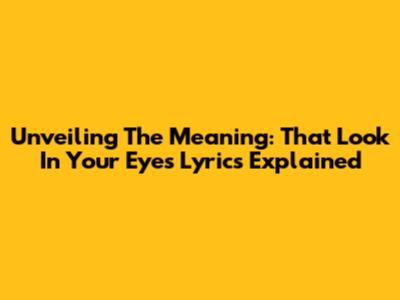 Unveiling The Meaning: 'That Look In Your Eyes' Lyrics Explained