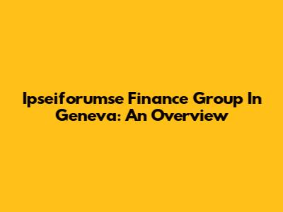 Ipseiforumse Finance Group In Geneva: An Overview