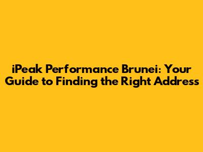 Finding the right address for iPeak Performance Brunei is just the first step in your fitness journey. By using the information in this guide, you should be able to find the locations and begin your fitness transformation with confidence. Remember to prioritize your health, stay motivated, and enjoy the process. Good luck, and happy training!