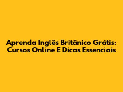 Aprenda Inglês Britânico Grátis: Cursos Online E Dicas Essenciais