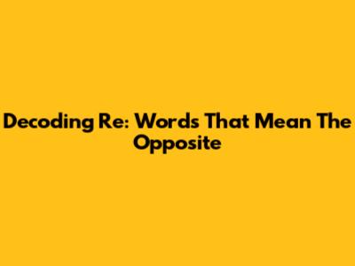 Decoding 'Re': Words That Mean The Opposite