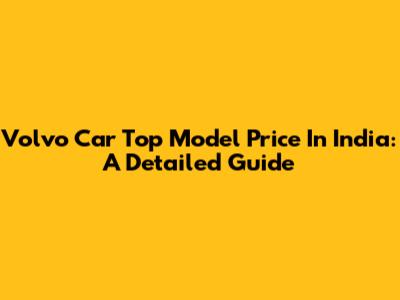 Volvo Car Top Model Price In India: A Detailed Guide