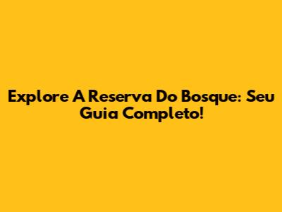 Explore A Reserva Do Bosque: Seu Guia Completo!