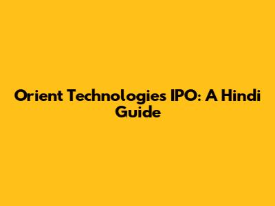 Orient Technologies IPO: A Hindi Guide