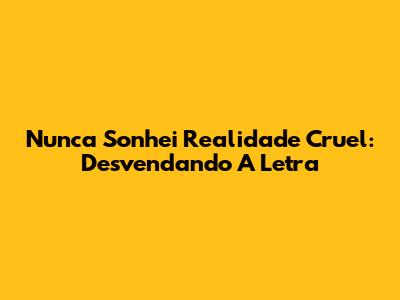 Nunca Sonhei Realidade Cruel: Desvendando A Letra