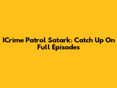 ICrime Patrol Satark: Catch Up On Full Episodes