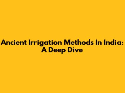 Ancient Irrigation Methods In India: A Deep Dive