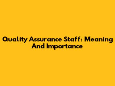 Quality Assurance Staff: Meaning And Importance