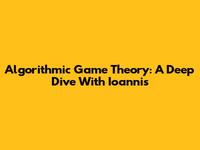 Algorithmic Game Theory: A Deep Dive With Ioannis