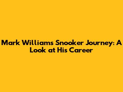 Mark Williams' Snooker Journey: A Look At His Career