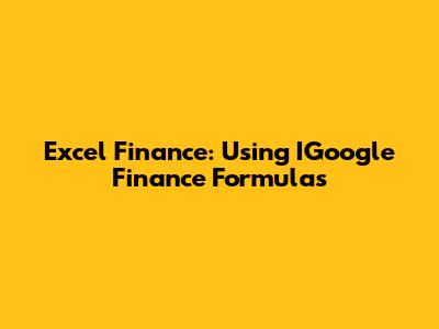 Excel Finance: Using IGoogle Finance Formulas