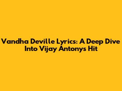 Vandha Deville Lyrics: A Deep Dive Into Vijay Antony's Hit