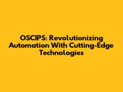 OSCIPS: Revolutionizing Automation With Cutting-Edge Technologies