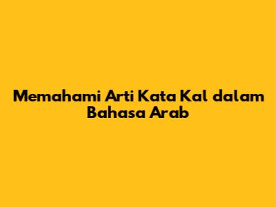 Memahami Arti Kata 'Kal' Dalam Bahasa Arab