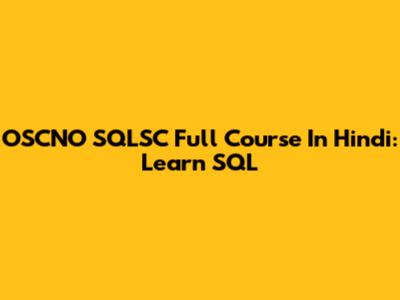 OSCNO SQLSC Full Course In Hindi: Learn SQL