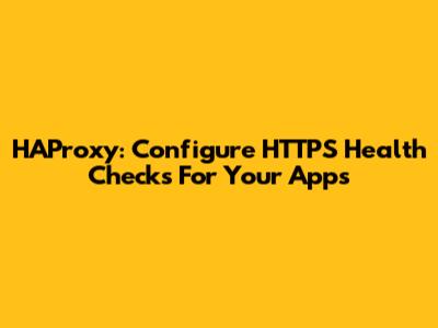 HAProxy: Configure HTTPS Health Checks For Your Apps