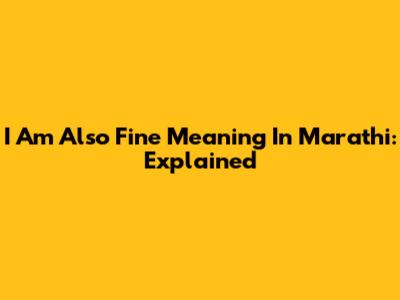 I Am Also Fine Meaning In Marathi: Explained