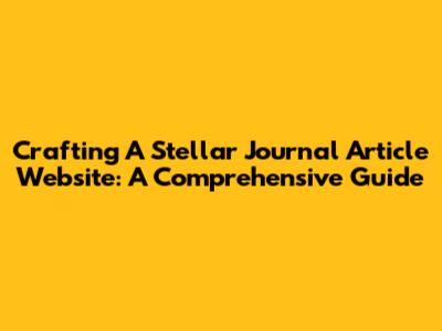 Crafting A Stellar Journal Article Website: A Comprehensive Guide