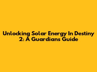 Unlocking Solar Energy In Destiny 2: A Guardian's Guide
